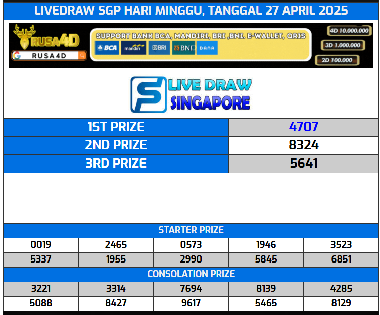 43 Result Livedraw SGP Hari ini 27 April 2025 adalah istilah yang merujuk pada proses pengundian nomor secara langsung dalam permainan lotere Singapore (SGP). Livedraw SGP ini biasanya disiarkan secara langsung melalui berbagai platform, termasuk situs web, media sosial, atau saluran televisi, sehingga para pemain dapat menyaksikan penarikan nomor secara real-time. Result Livedraw SGP Hari ini 27 April 2025 Saksikan Live Draw SGP yang akan ditampilkan mulai pukul 17:35 WIB hingga pukul 18:07 WIB ( Kecuali Selasa dan Kamis )melalui tabel live Singapore di bawah ini. Anda juga bisa menyaksikan Livedraw HK dan Livedraw SDY di samping dari artikel ini : Livedraw keluaran togel Singapore adalah siaran langsung atau penarikan langsung dari hasil undian nomor togel SGP. Dalam livedraw ini, nomor yang keluar ditarik secara acak di depan kamera dan disiarkan langsung melalui internet. Tujuan dari livedraw dalam permainan togel adalah untuk memberikan transparansi dan kepercayaan kepada para pemain. Berikut beberapa tujuan utama dari livedraw: Transparansi: Dengan menyiarkan langsung proses penarikan nomor, penyelenggara togel menunjukkan bahwa hasil undian dilakukan secara acak dan jujur, tanpa adanya manipulasi. Kepercayaan: Melalui livedraw, pemain dapat melihat sendiri bagaimana nomor-nomor ditarik, sehingga meningkatkan kepercayaan mereka terhadap integritas permainan. Kepuasan Pemain: Pemain dapat mengetahui hasil undian secara real-time, tanpa harus menunggu lama. Hal ini memberikan pengalaman yang lebih interaktif dan memuaskan. Jika anda sudah selesai menyaksikan Live SGP di atas anda bisa melihat juga data SGP yang kami siapkan dibawah ini. Data Result SGP menampilkan hasil keluaran Singapore. Kegunaan Data SGP ini untuk memudahkan anda dalam memilih atau menciptakan angka prediksi yang akan muncul di periode selanjutnya. Di samping tabel data , anda juga dapat memprediksi angka keluaran melalui PAITO SGP .